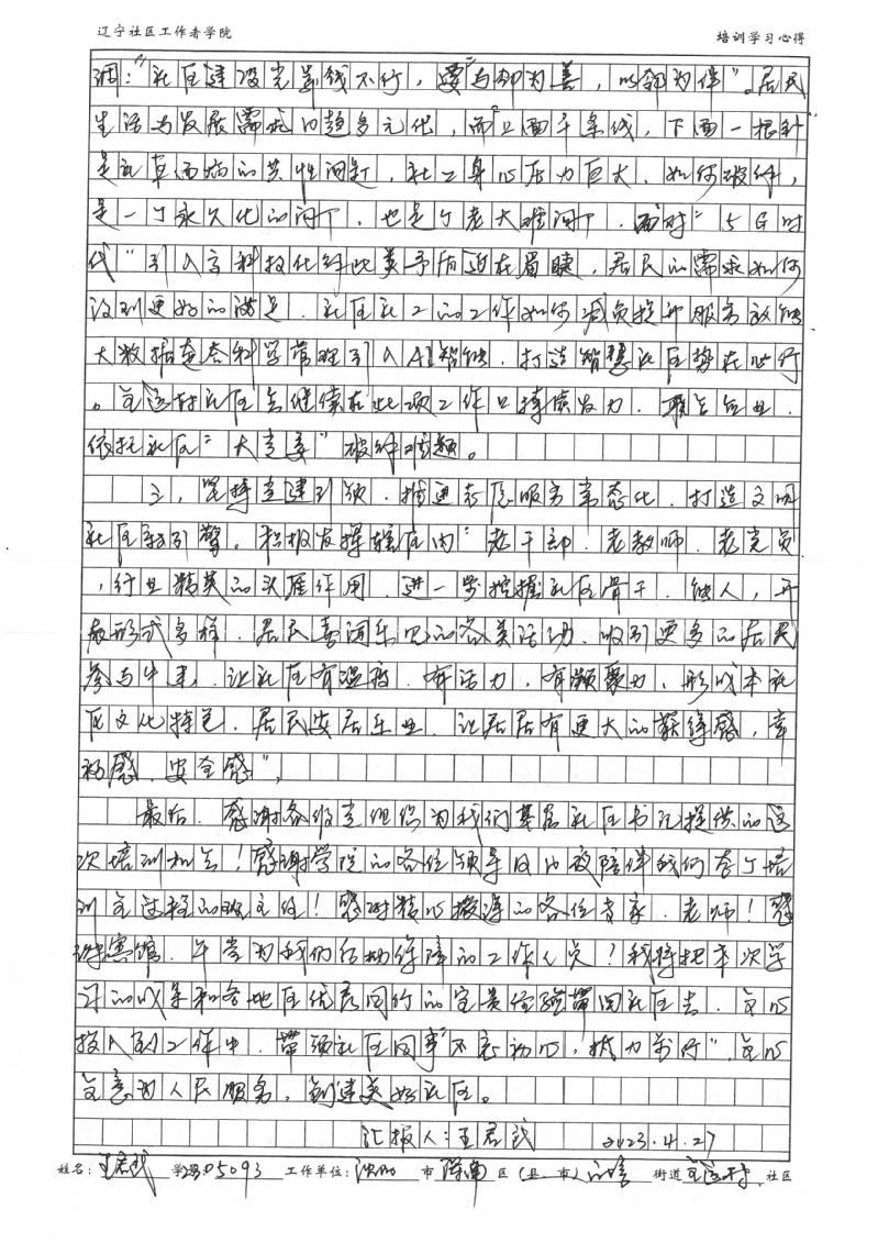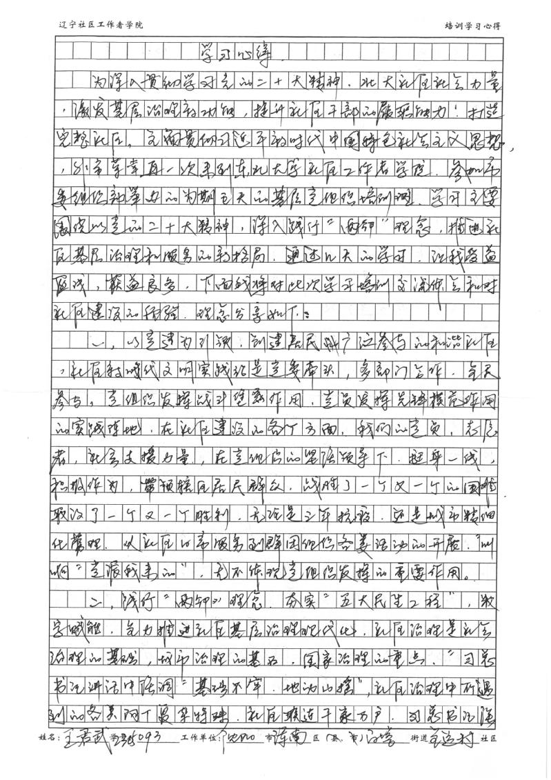 沈阳市浑南区白塔街道全运村社区书记王君武培训学习心得