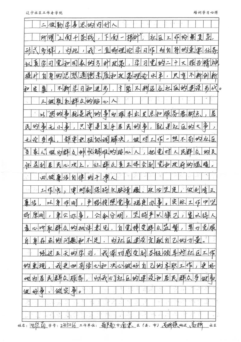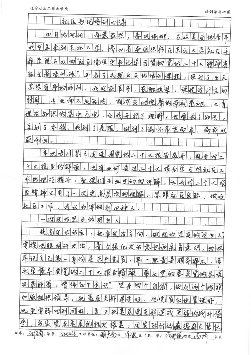 葫芦岛市南票区高桥镇高桥社区书记沈佳茵培训学习心得
