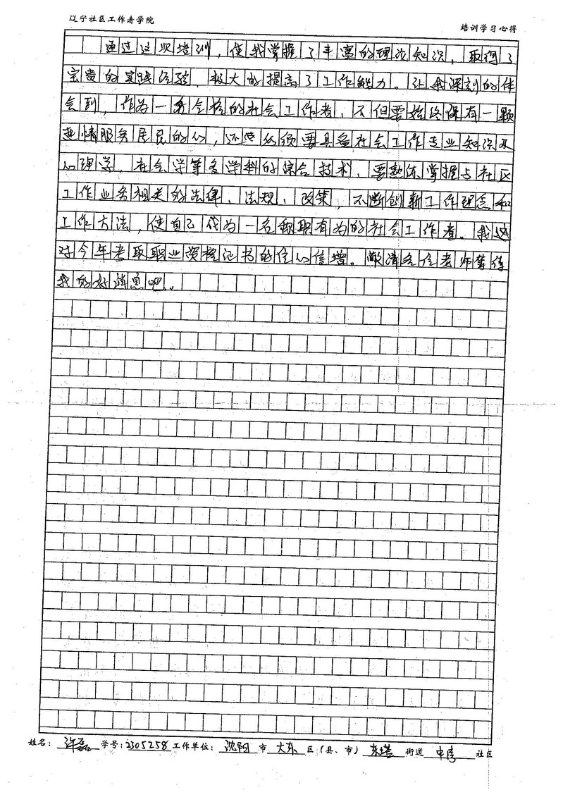 沈阳市大东区东塔街道中房社区委员许磊培训学习心得