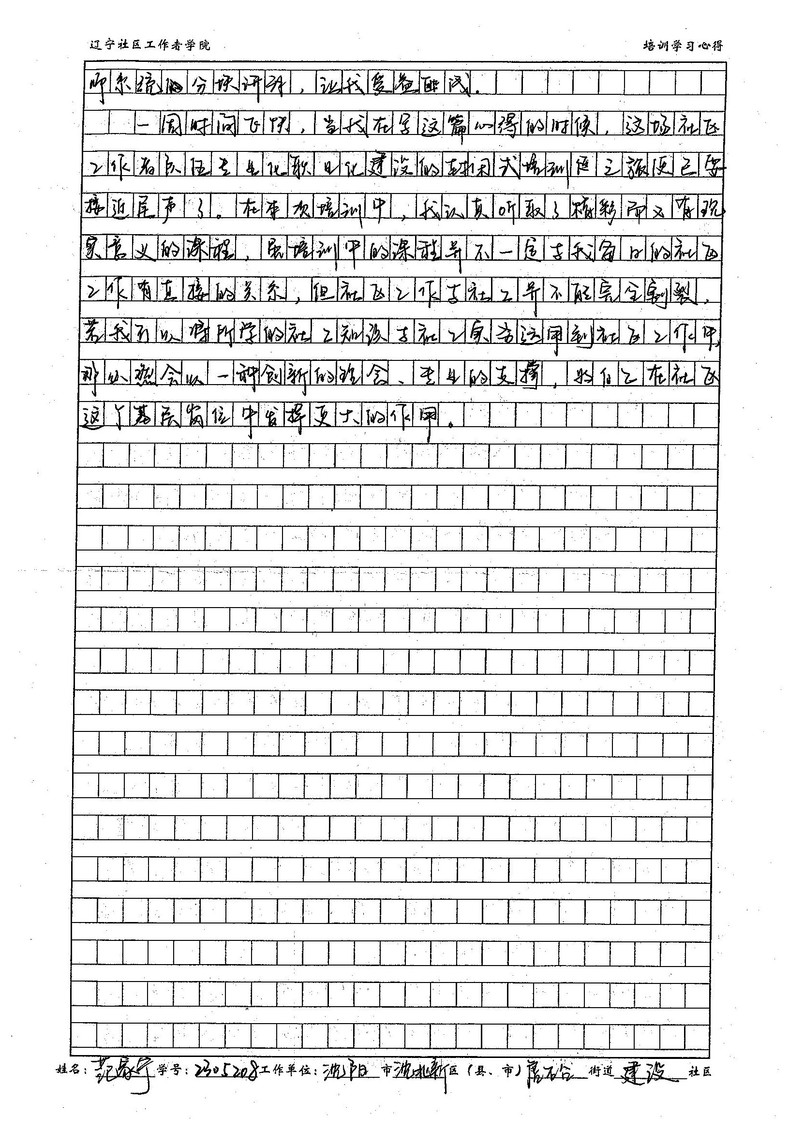 沈阳市沈北新区虎石台街道建设社区社区工作者范家宁培训学习心得