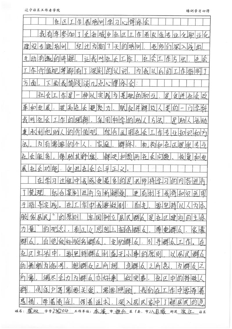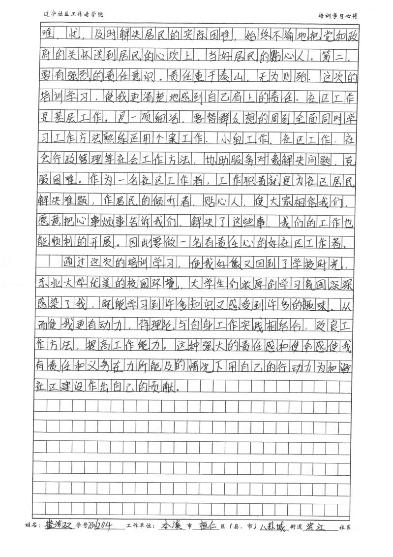 本溪市桓仁满族自治县八卦城街道滨江社区工作者崔双学习心得