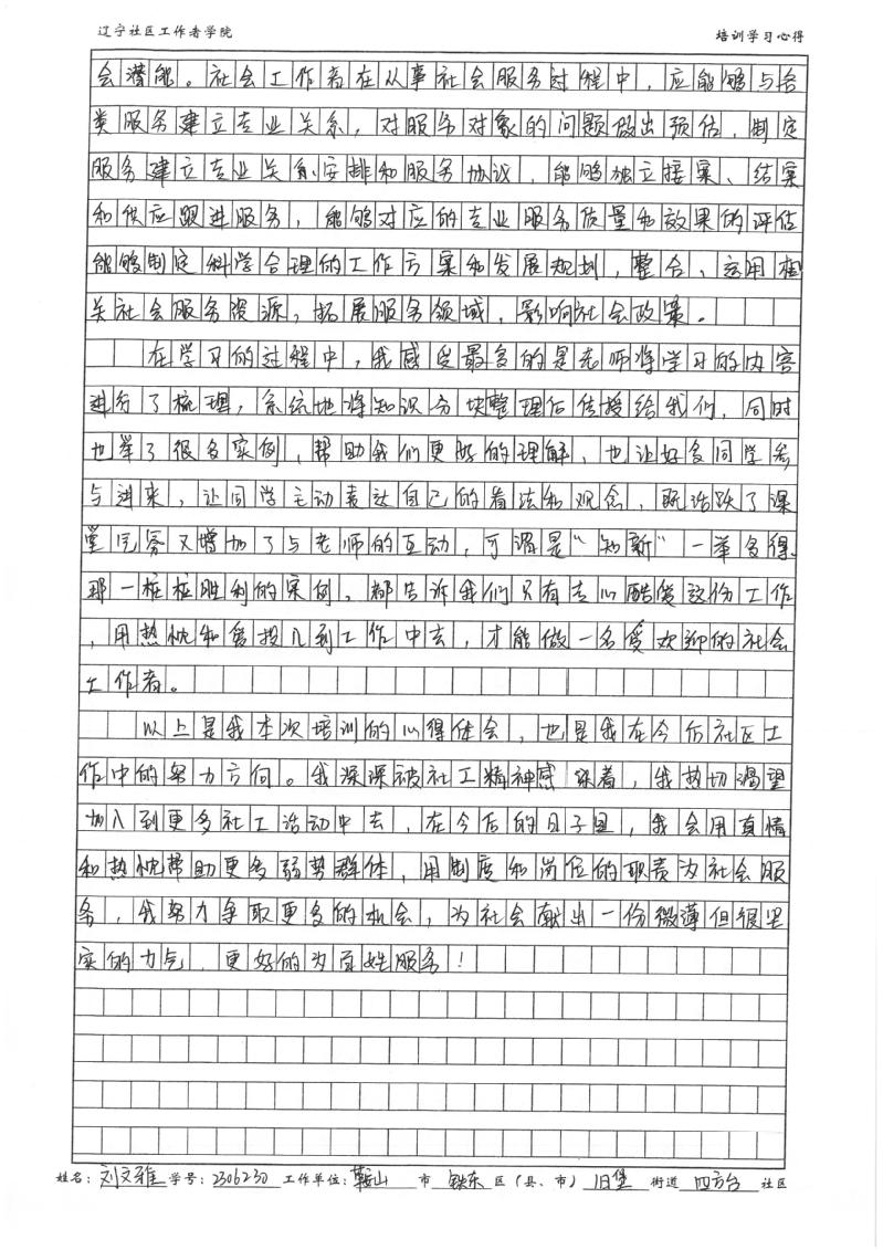 鞍山市铁东区旧堡街道四方台社区副主任刘文雅学习心得