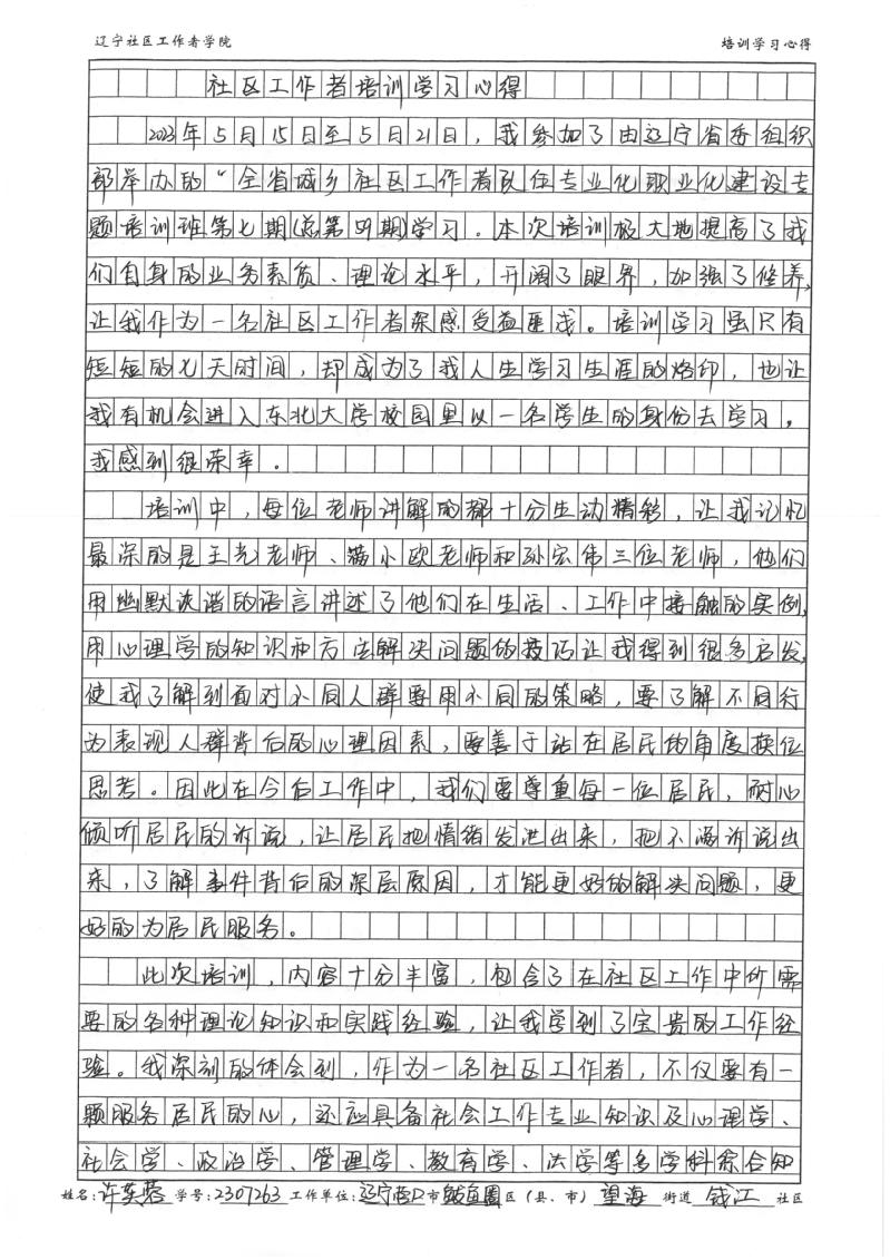 营口市鲅鱼圈区望海街道钱江社区许芙蓉学习心得