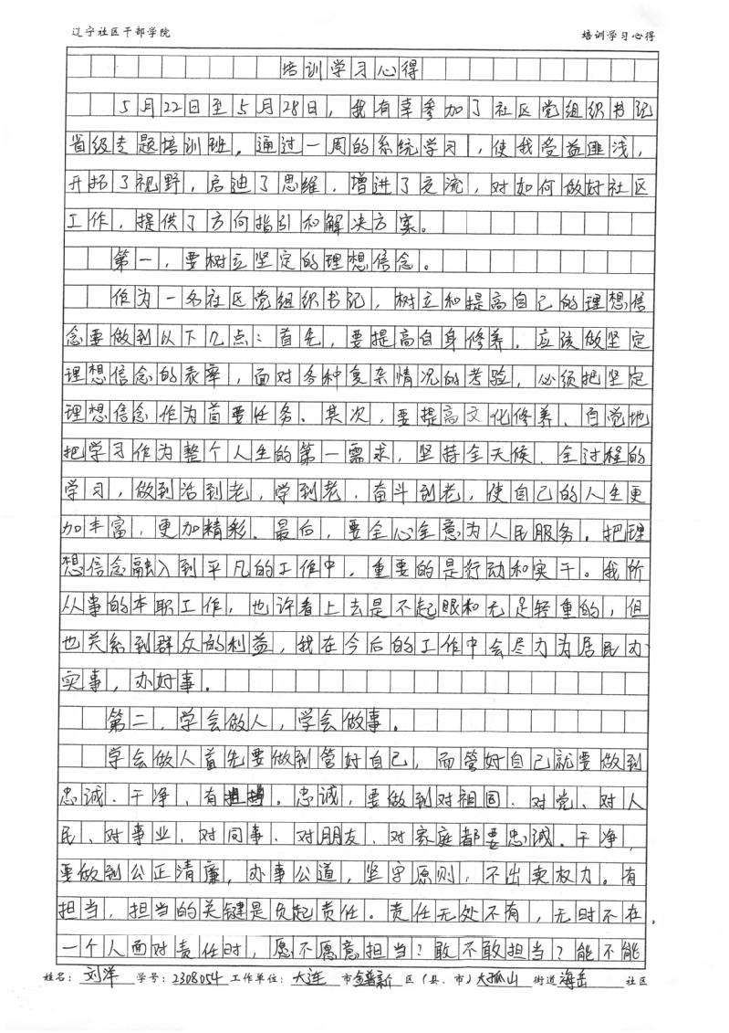 大连市金普新区大孤山街道海岳社区书记刘洋学习心得