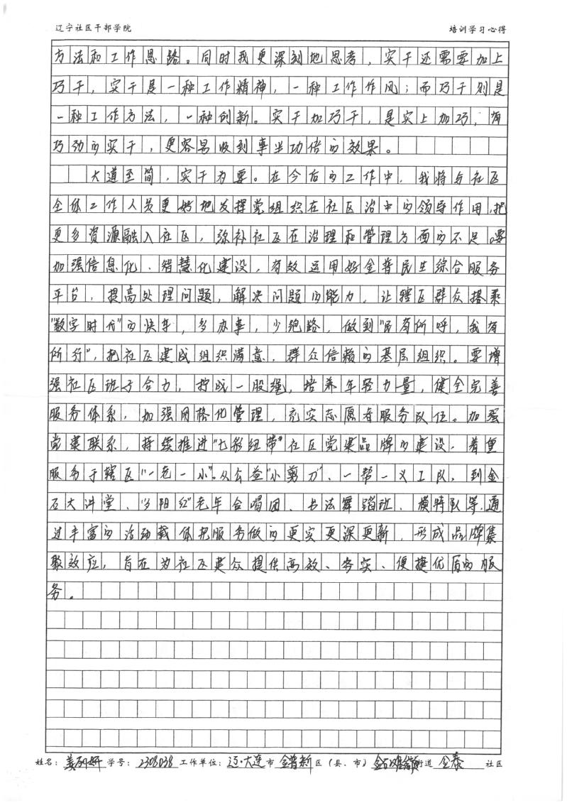 大连市金普新区金石滩街道金泰社区书记姜丽妍学习心得