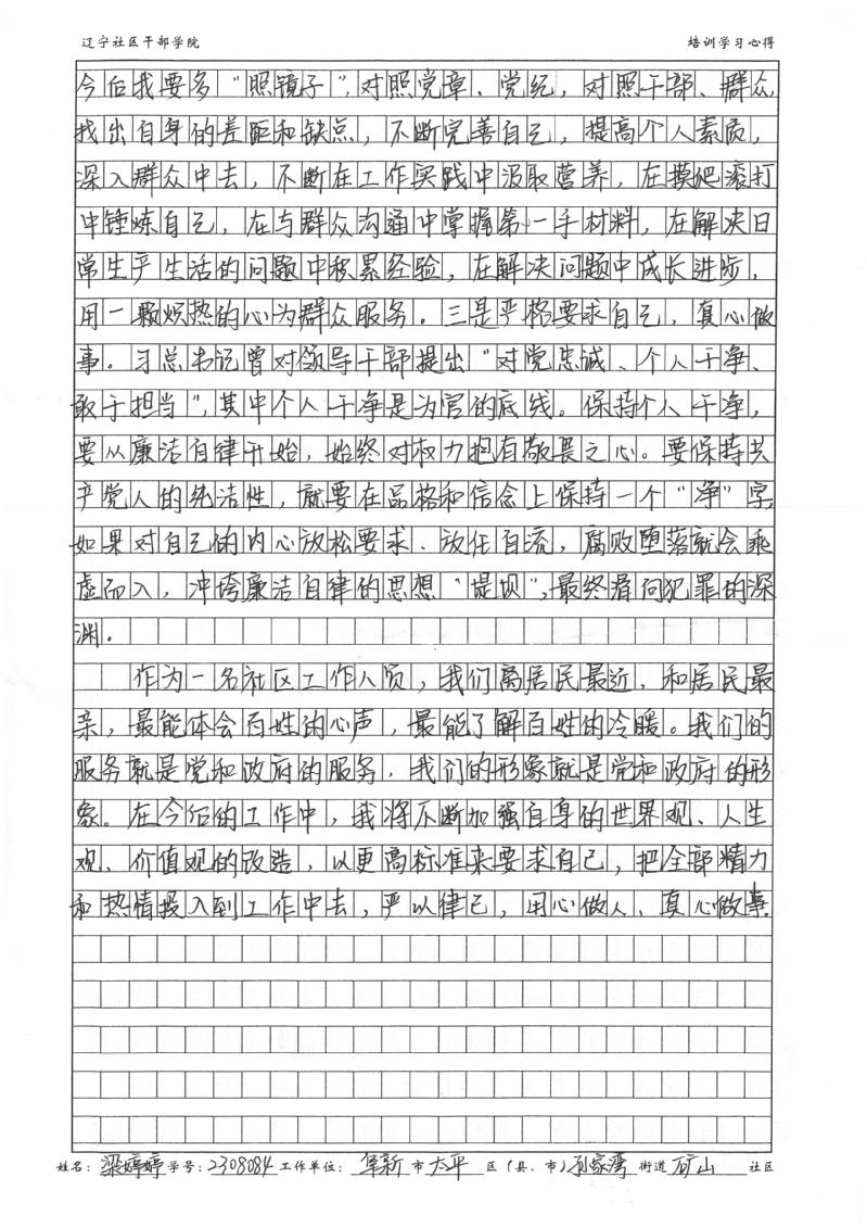 阜新市太平区孙家湾街道矿山社区书记梁婷婷学习心得