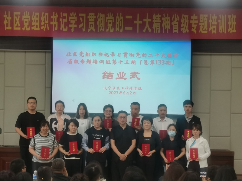 6月2日社区党组织书记学习贯彻党的二十大精神省级专题培训班第十三期(总第133期)结业式在东北大学举行,辽宁社区工作者学院相关负责同志参加了本次结业式。