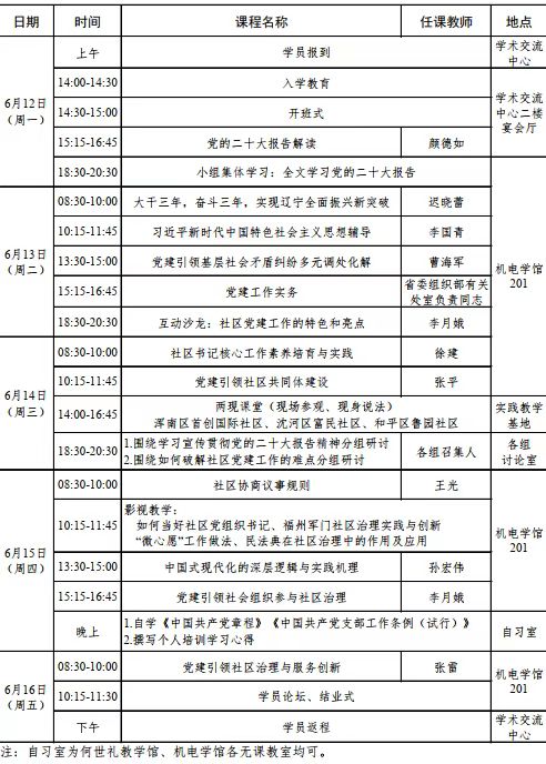 社区党组织书记学习贯彻党的二十大精神省级专题培训班第十四期(总第134期)培训班课程安排