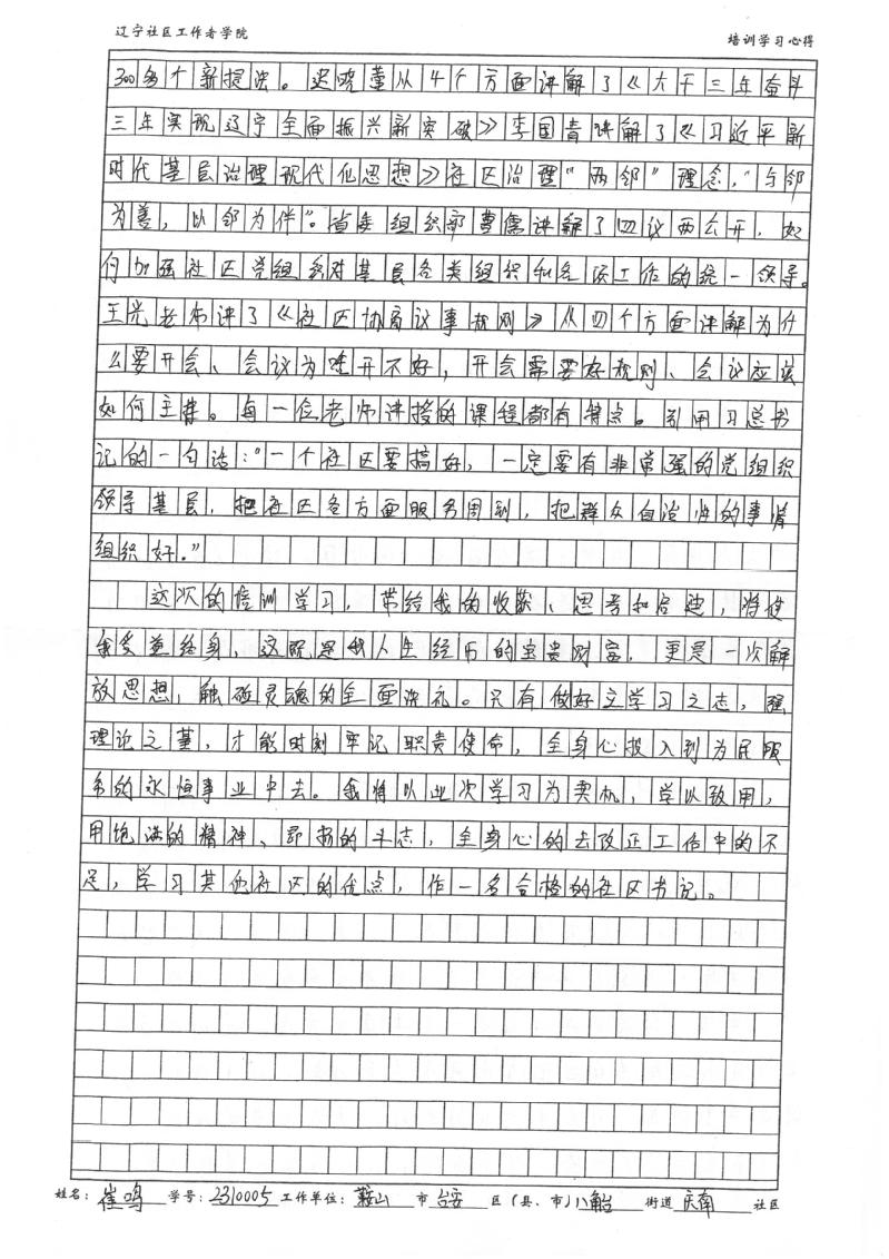 鞍山市台安县八角台街道庆南社区书记崔鸣学习心得
