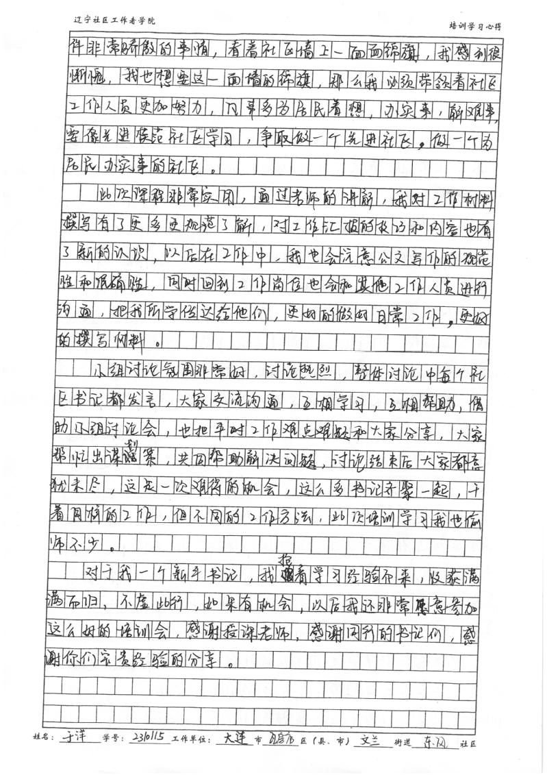 大连市瓦房店市文兰街道东风社区书记于洋学习心得
