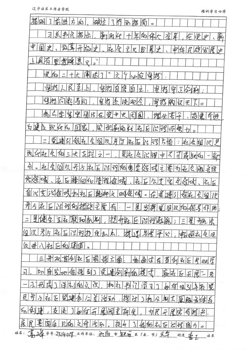 沈阳市铁西区兴华街道爱工社区书记高峰学习心得