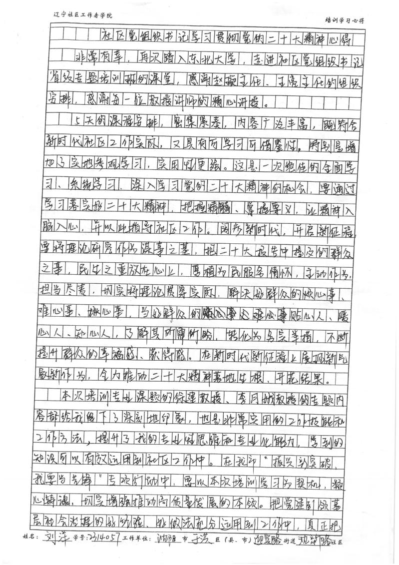 沈阳市于洪区迎宾路街道沈新路社区书记刘洋学习心得