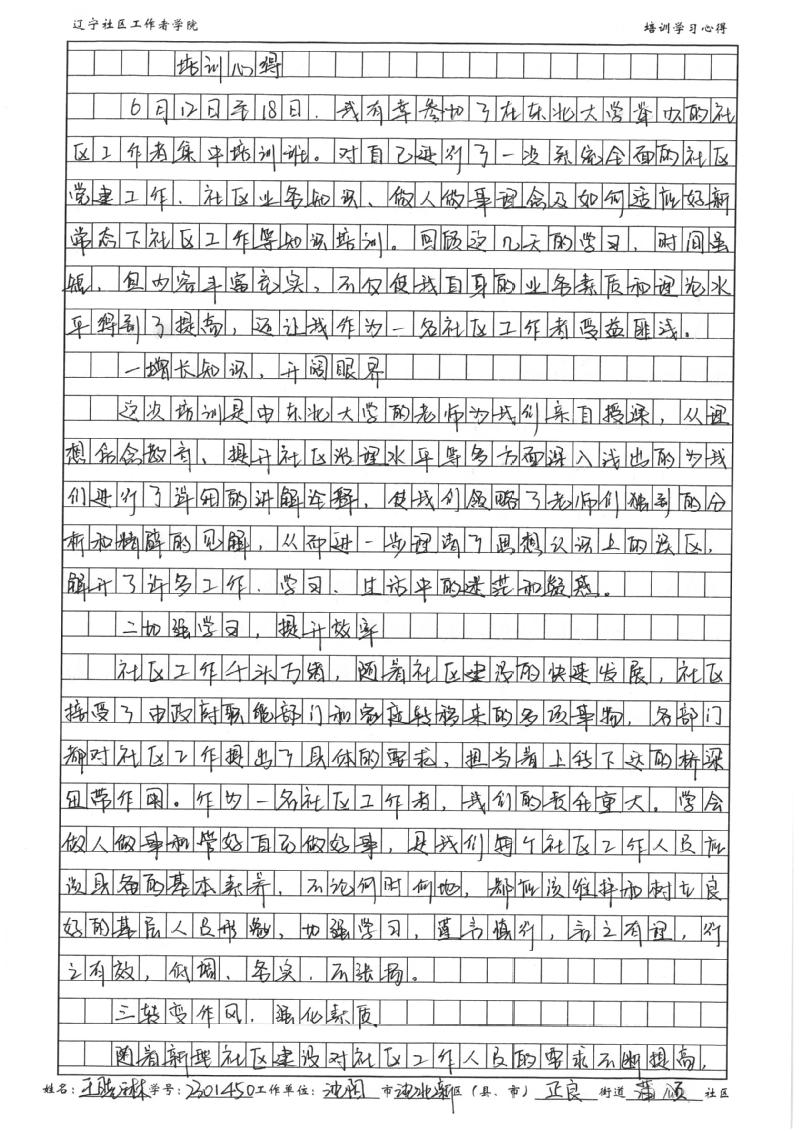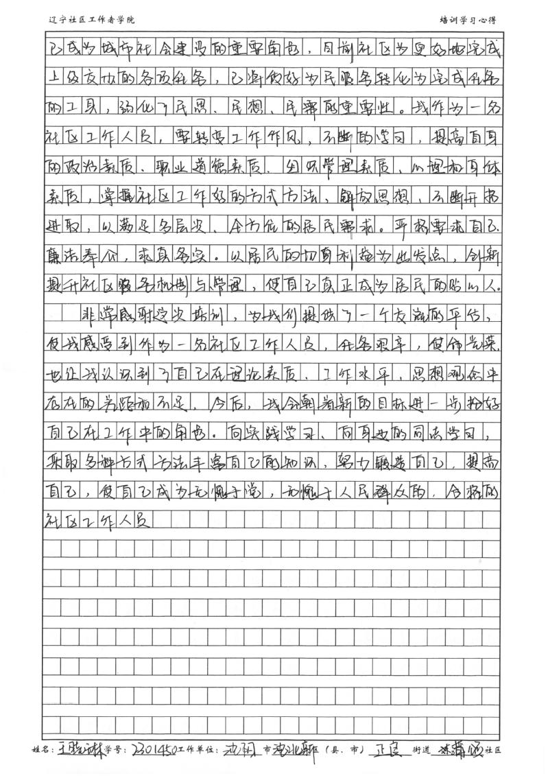 沈阳市沈北新区正良街道蒲颂社区副书记王晓琳心得体会