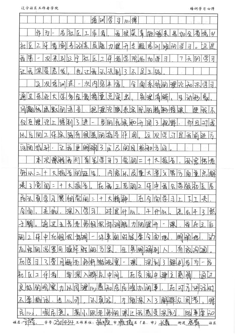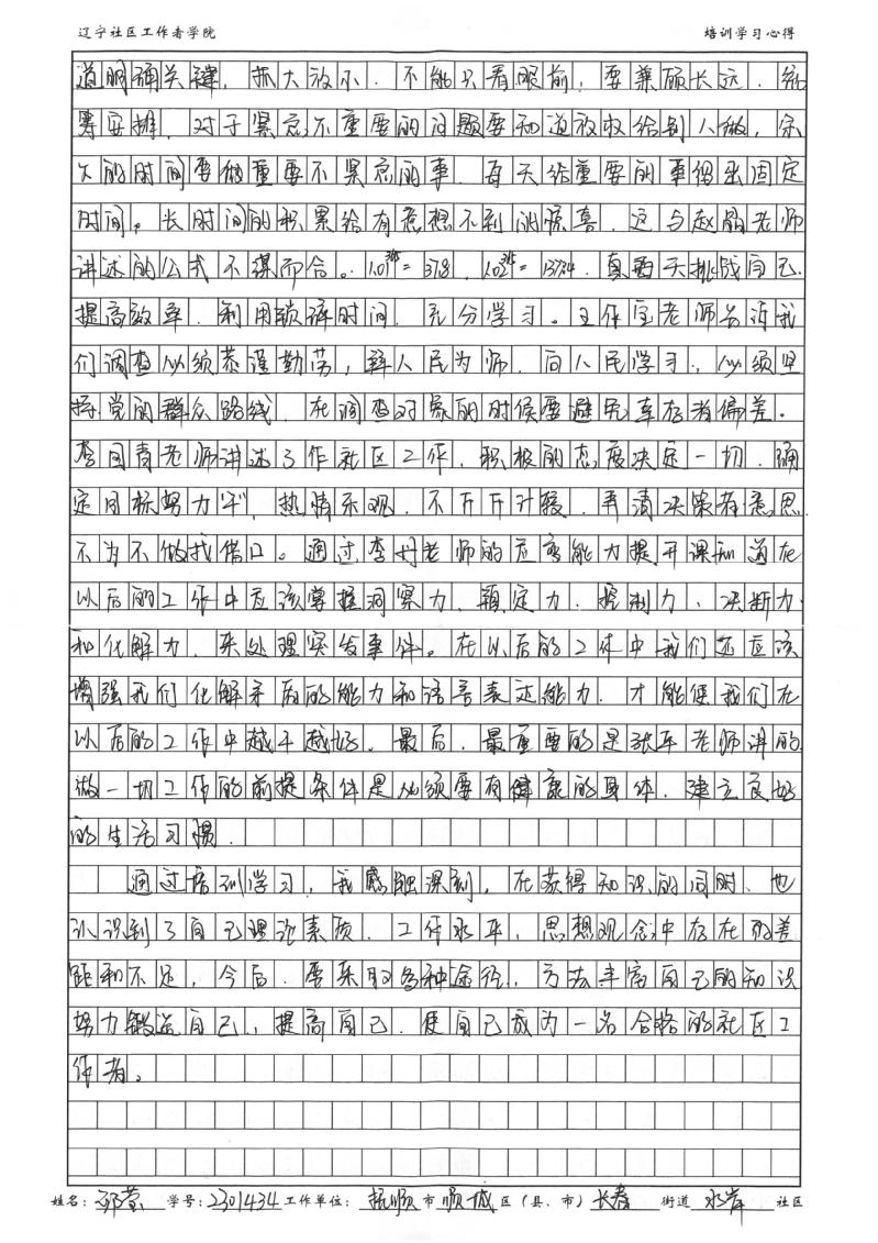 抚顺市顺城区长春街道水岸社区副书记邱莹心得体会