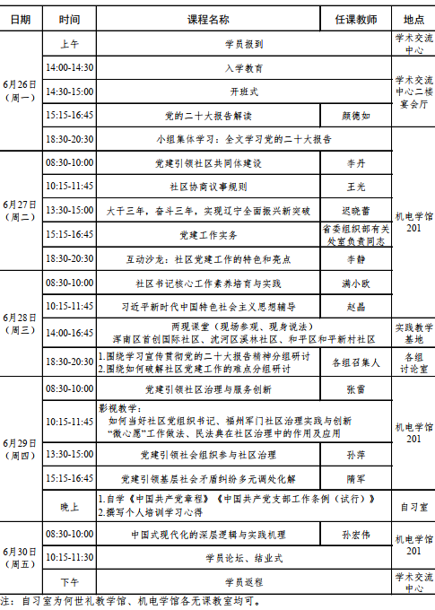 社区党组织书记学习贯彻党的二十大精神省级专题培训班第十五期(总第135期)培训班课程安排