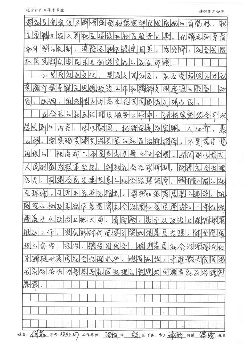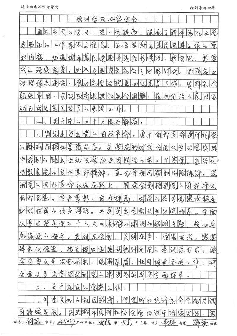 沈阳市大东区津桥街道锦绣社区书记何茹培训学习心得