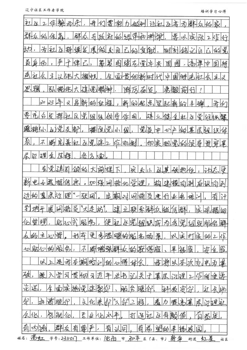 沈阳市和平区新华街道红星社区书记高虹培训学习心得
