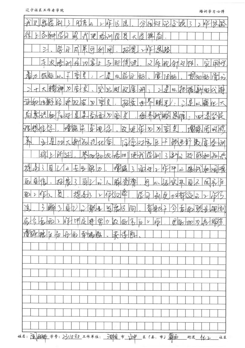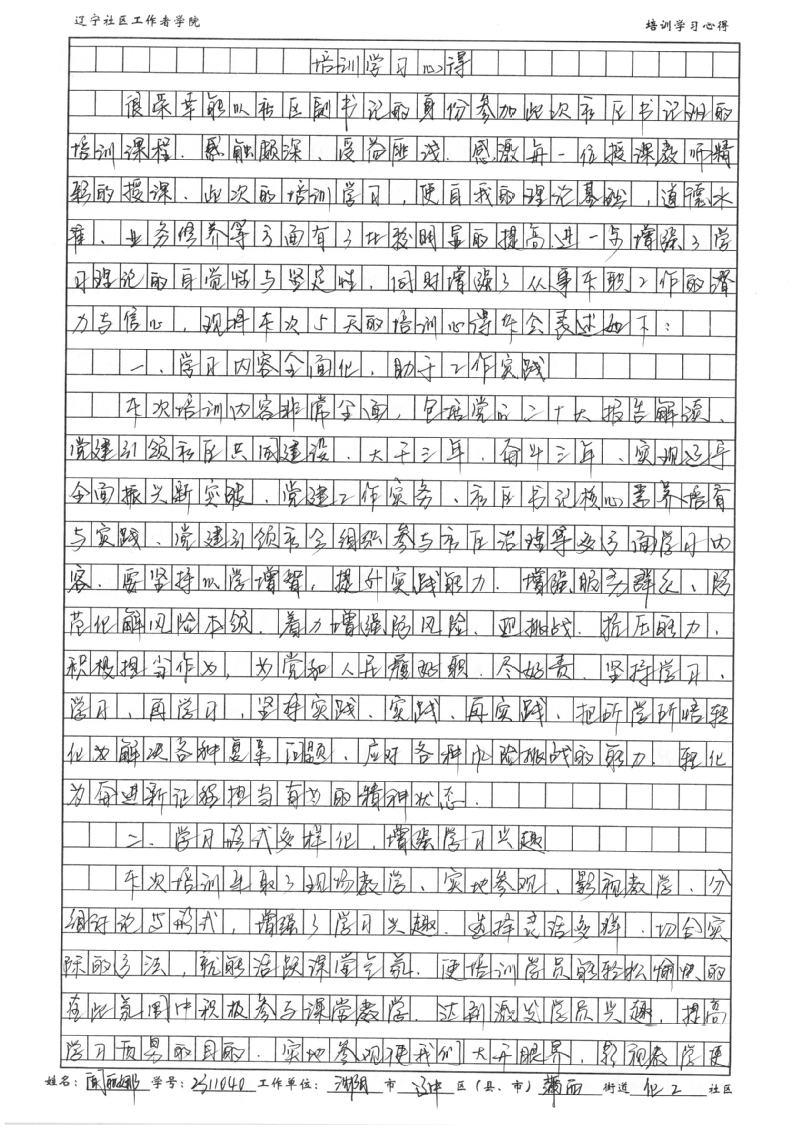 沈阳市辽中区蒲西街道化工社区副书记闻丽娜培训学习心得