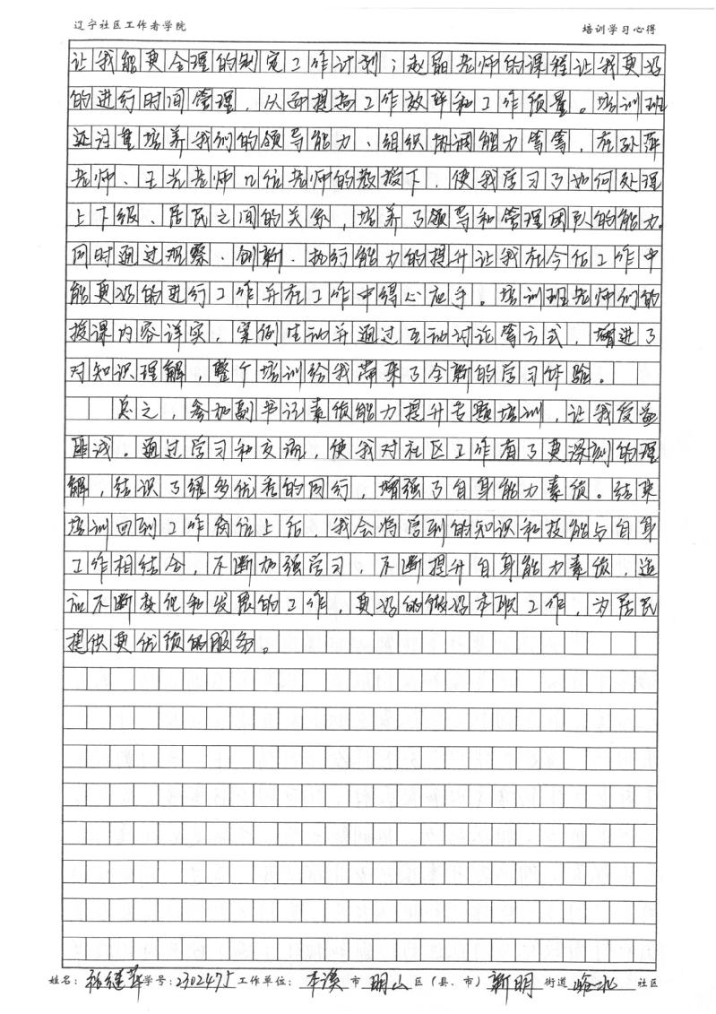 本溪市明山区新明街道峪北社区党委副书记张继苹培训学习心得