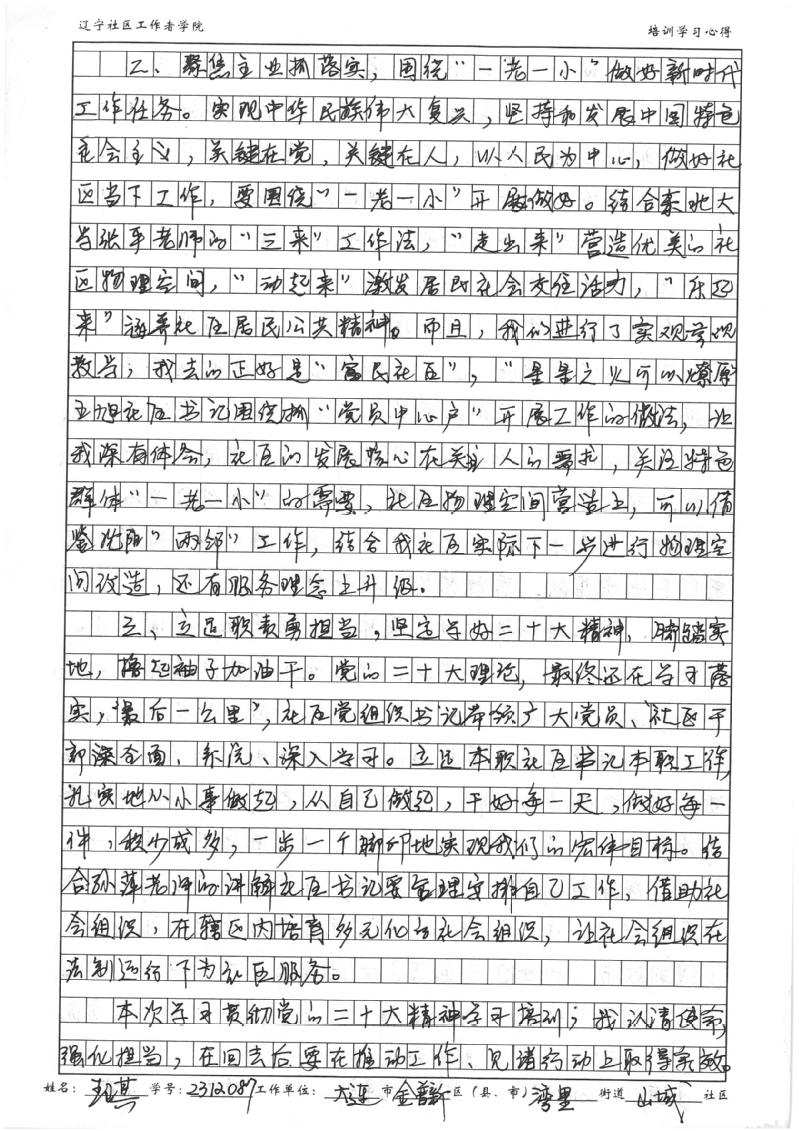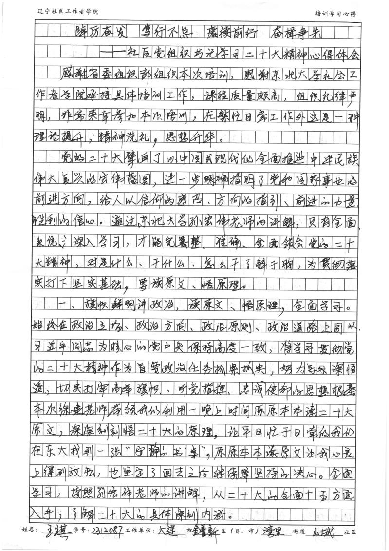 大连金普新区湾里街道山城社区书记王琪培训学习心得