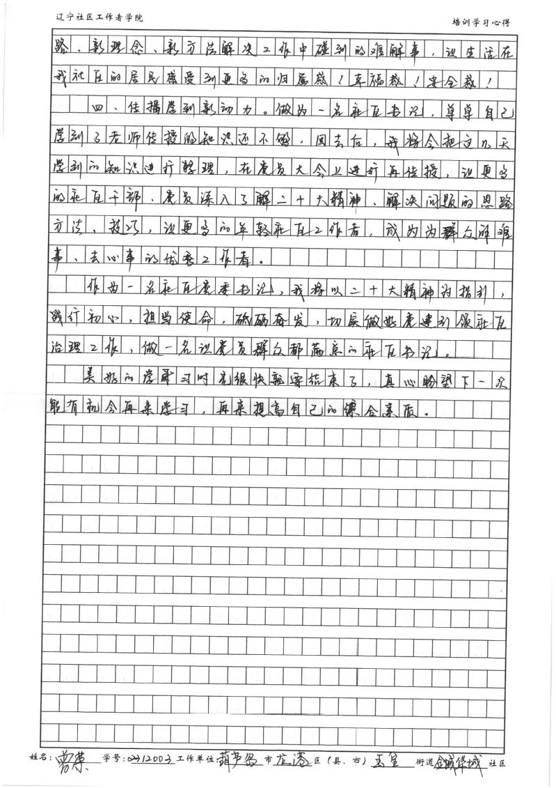 葫芦岛市龙港区玉皇街道金域华城社区党委书记曾荣培训学习心得
