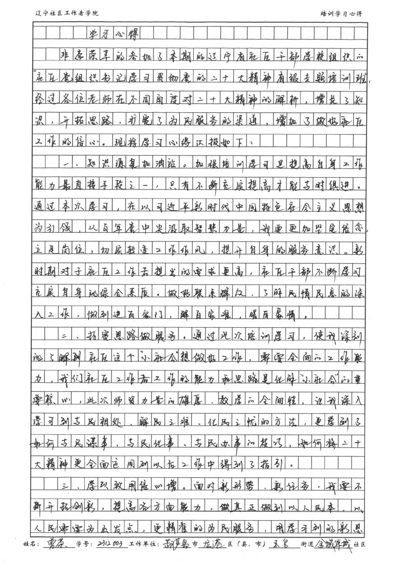 大连金普新区友谊街道爱民社区书记马桃培训学习心得