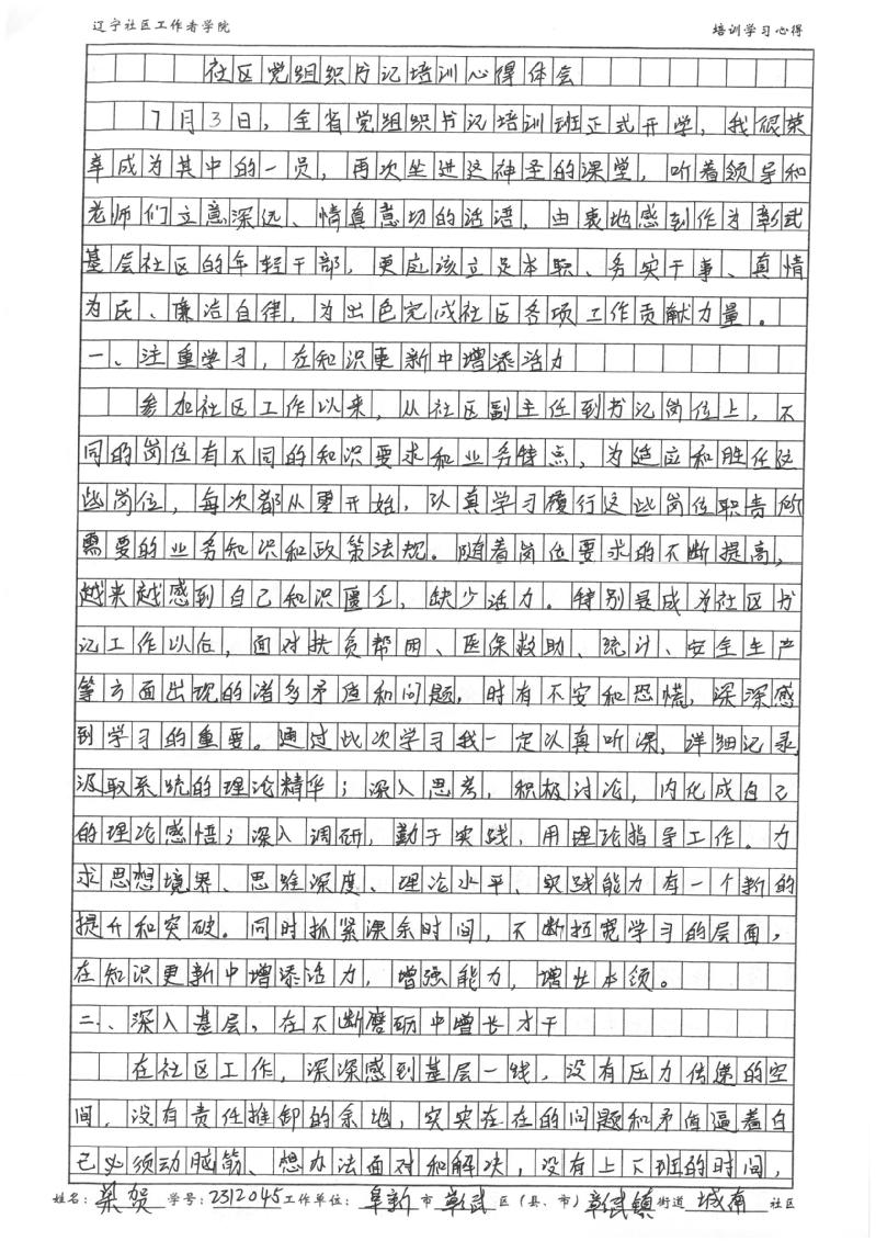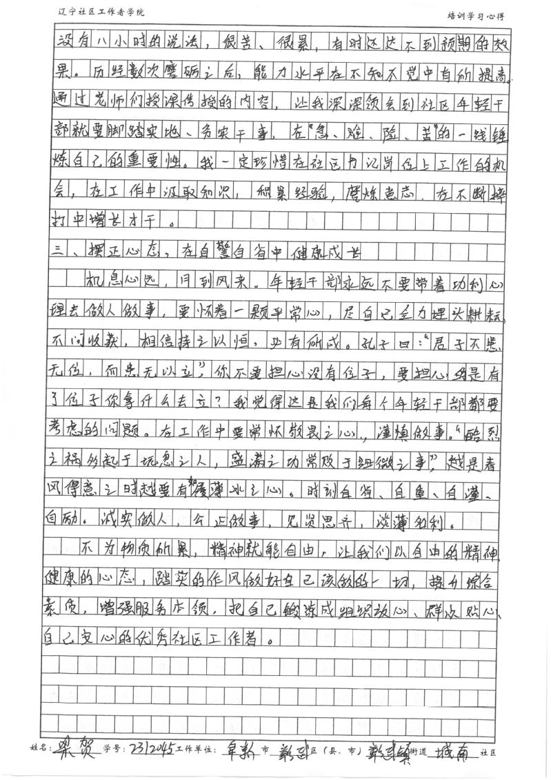 阜新市彰武县彰武镇城南社区书记梁贺培训学习心得