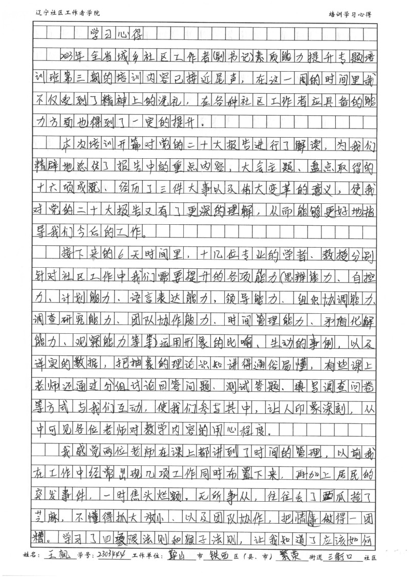 鞍山市铁西区繁荣街道三街口社区王枫培训学习心得