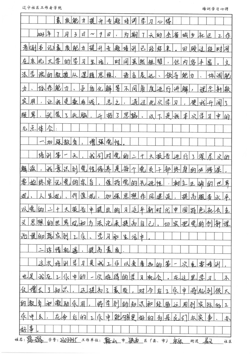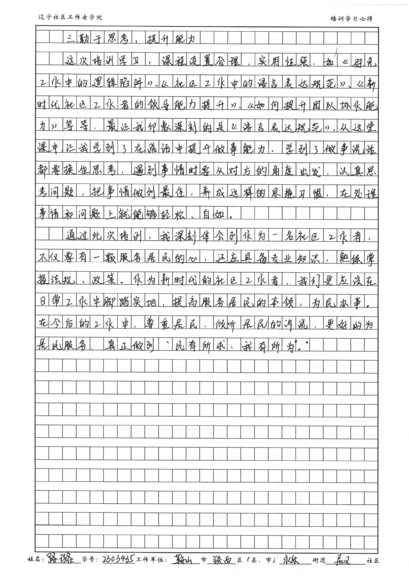 鞍山市铁西区永乐街道居义社区路璐培训学习心得