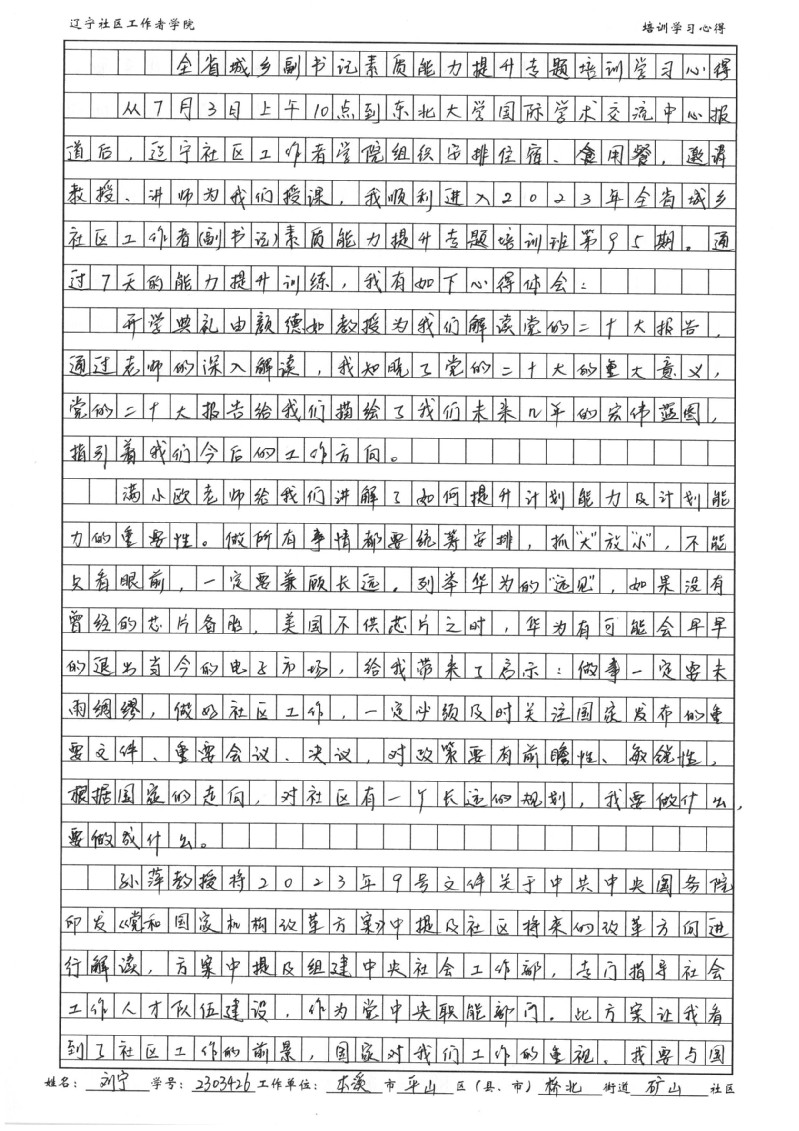 本溪市平山区桥北街道矿山社区刘宁培训学习心得