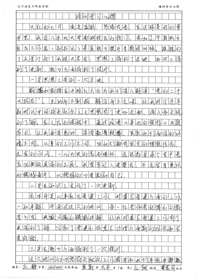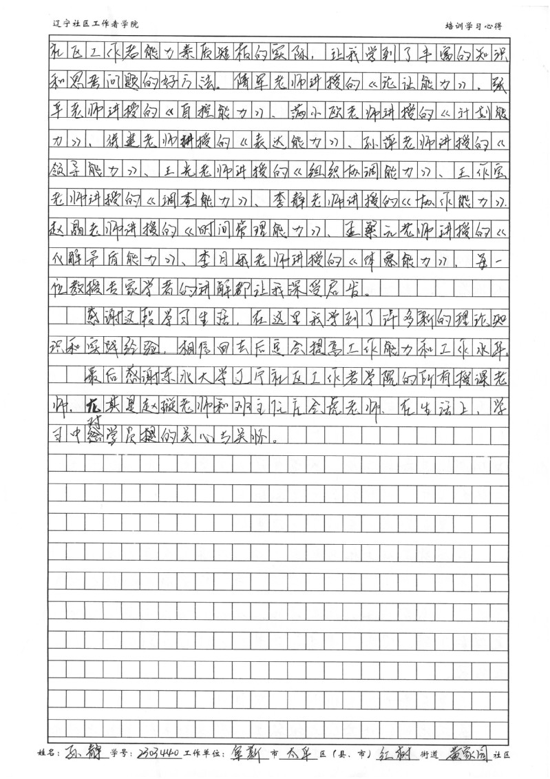 阜新市太平区红树街黄家园社区孙静培训学习心得