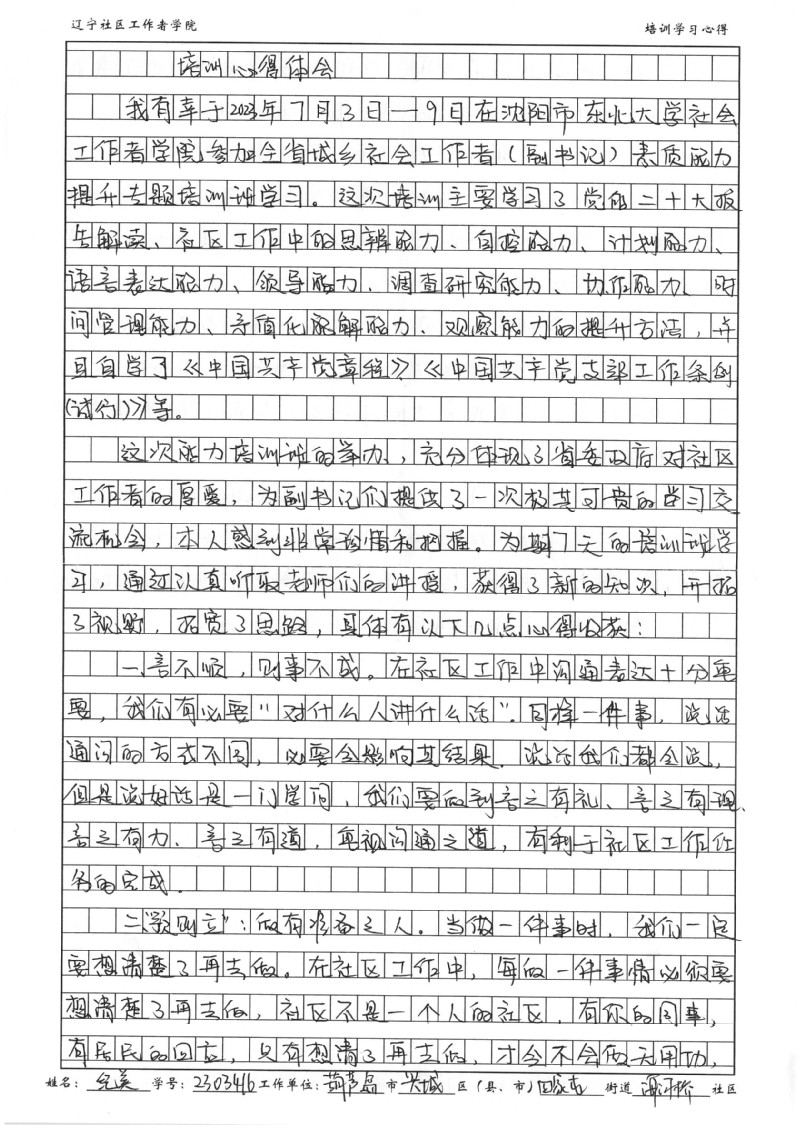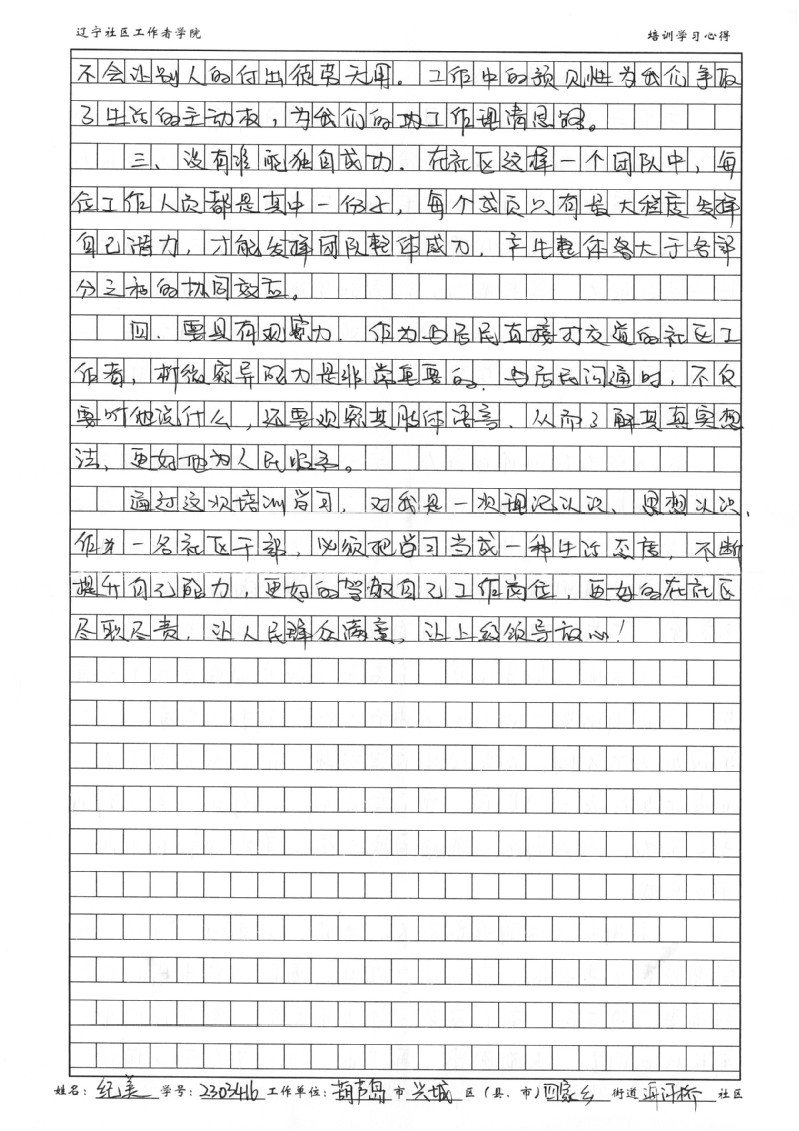 葫芦岛市兴城区四家屯街道海河桥社区纪美培训学习心得