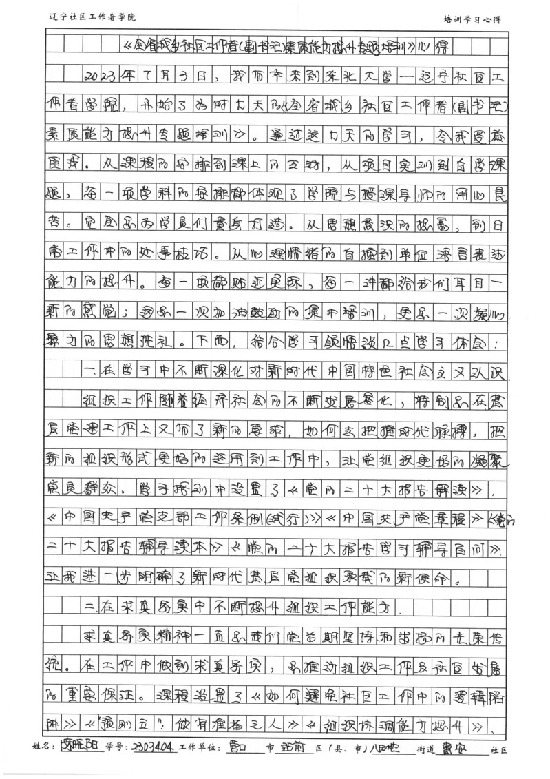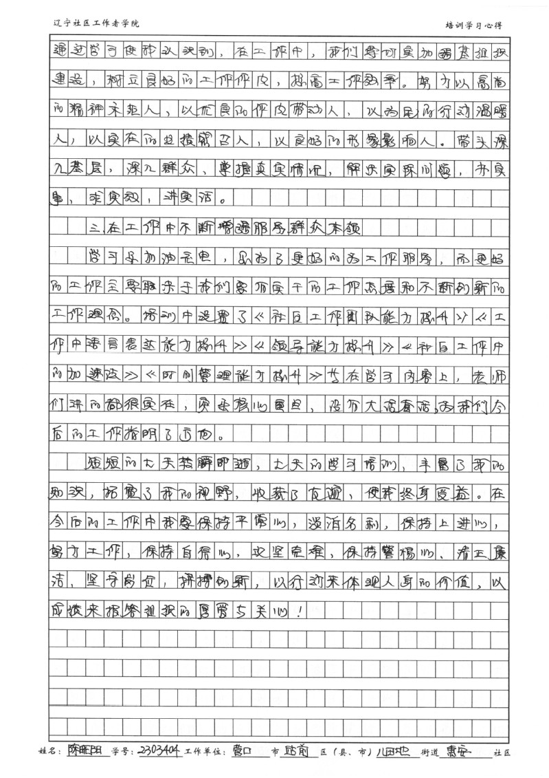 营口市站前区八田地街道惠安社区陈晓阳培训学习心得