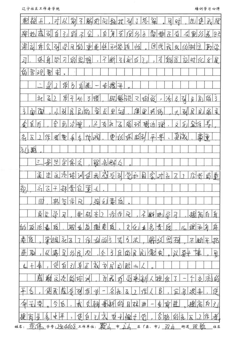 鞍山市立山区双山街道双胜社区范伟学习心得