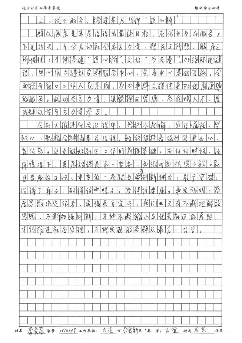 大连市金普新区友谊街道龙兴社区党总支书记、居委会主任李秀莹学习心得