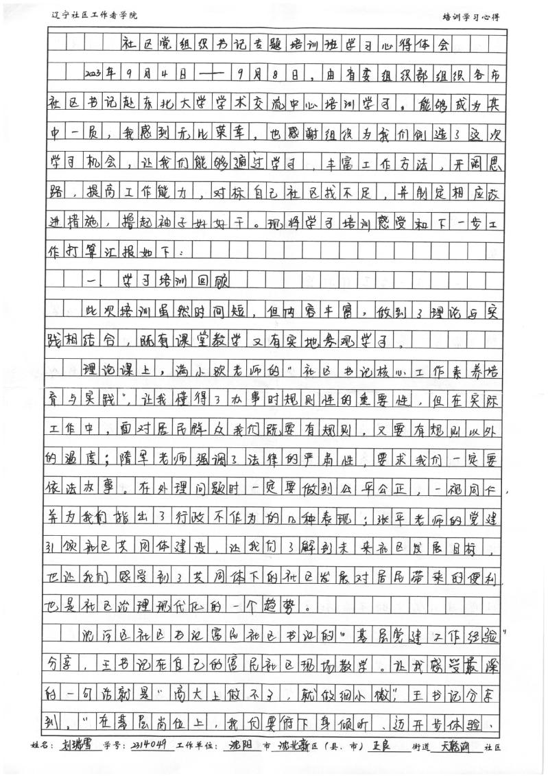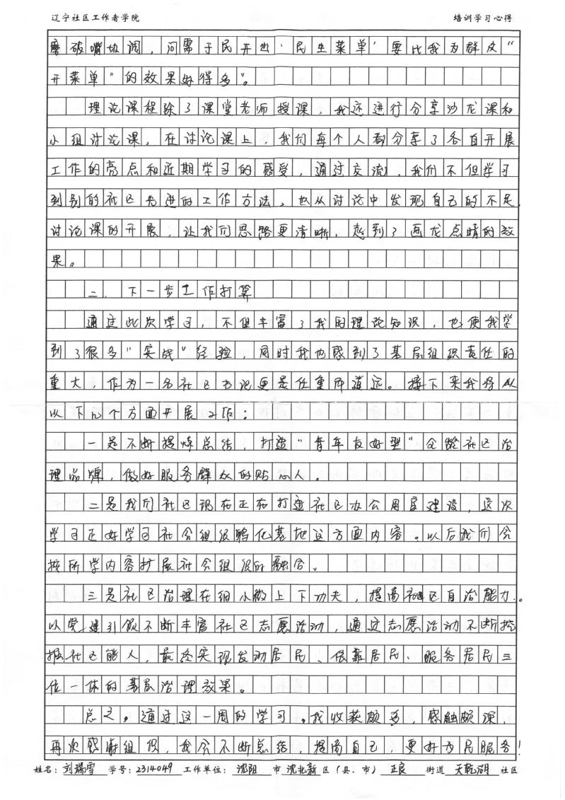 沈阳市沈北新区正良街道天乾湖社区党委书记、居委会主任刘瑞雪学习心得