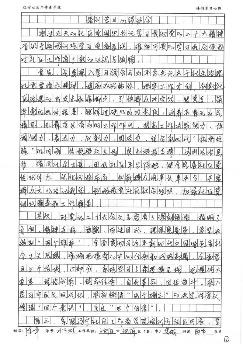沈阳市沈河区皇城街道西华社区党委书记、居委会主任陈坤学习心得