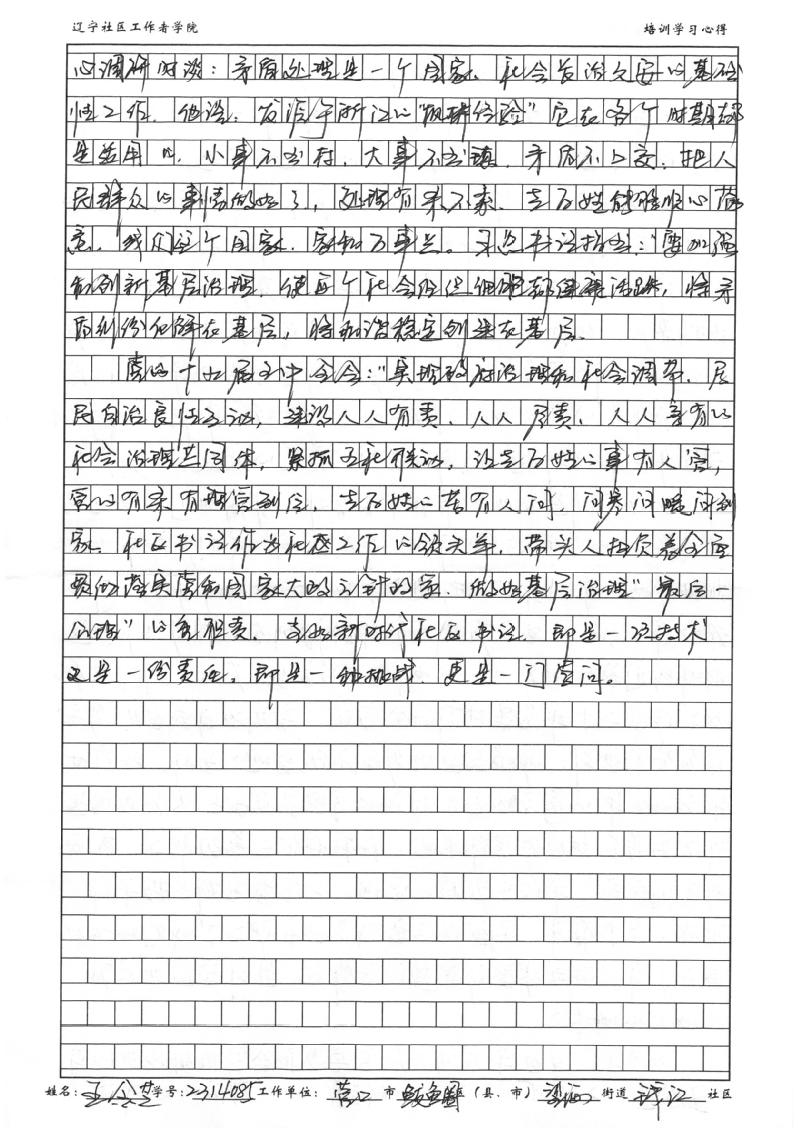 营口市鲅鱼圈区望海街道钱江社区党支部书记、居委会主任王金芝学习心得