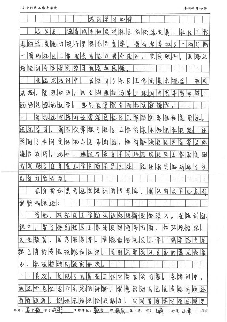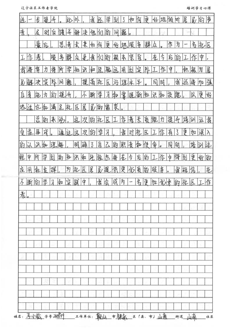 鞍山市铁东区山南街道山南社区党委副书记马小松学习心得