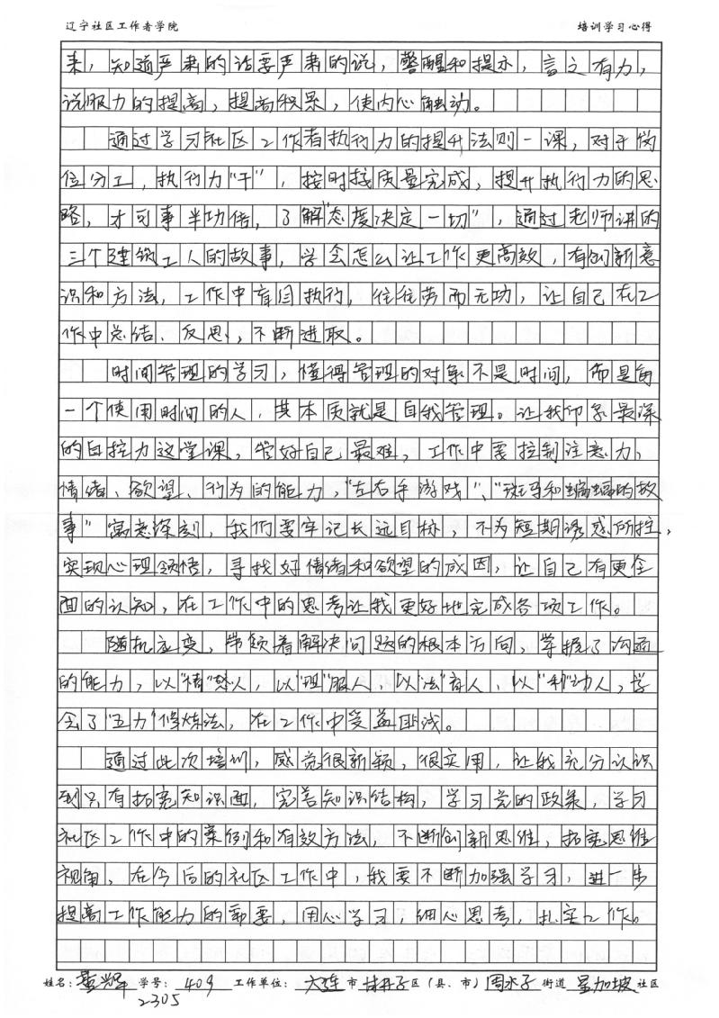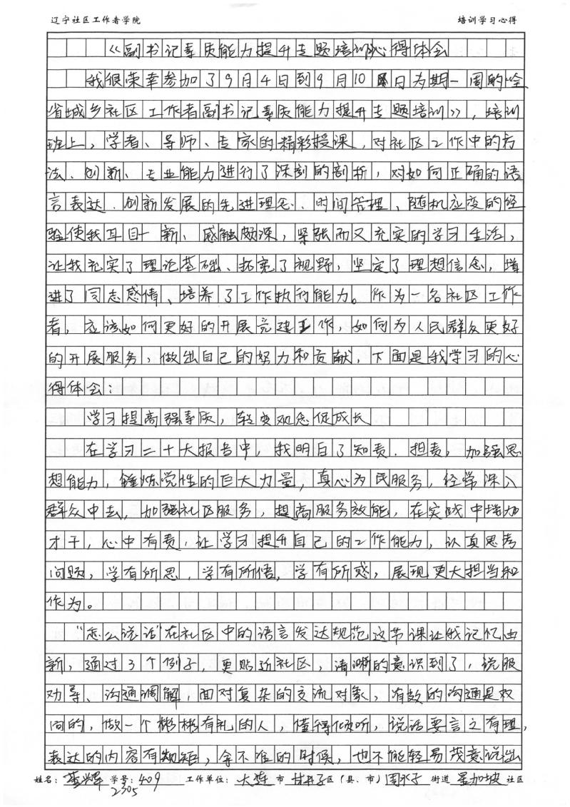 大连市甘井子区周水子街道星加坡社区党委副书记黄辉学习心得