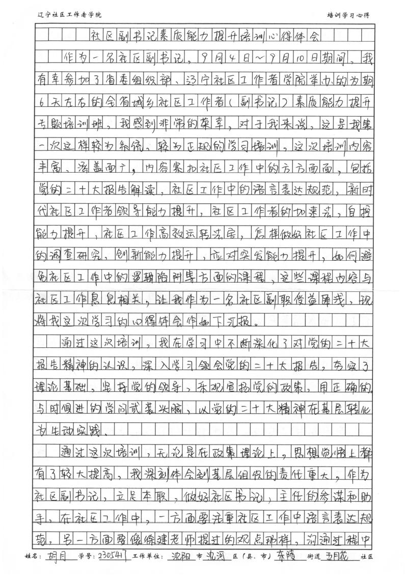 沈阳市沈河区东陵街道五月花社区党委副书记胡月学习心得