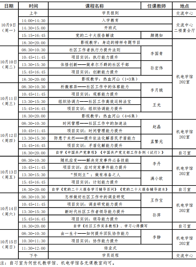 2023年全省城乡社区工作者(副书记)素质能力提升专题培训班第六期(总第98期)培训班课程安排