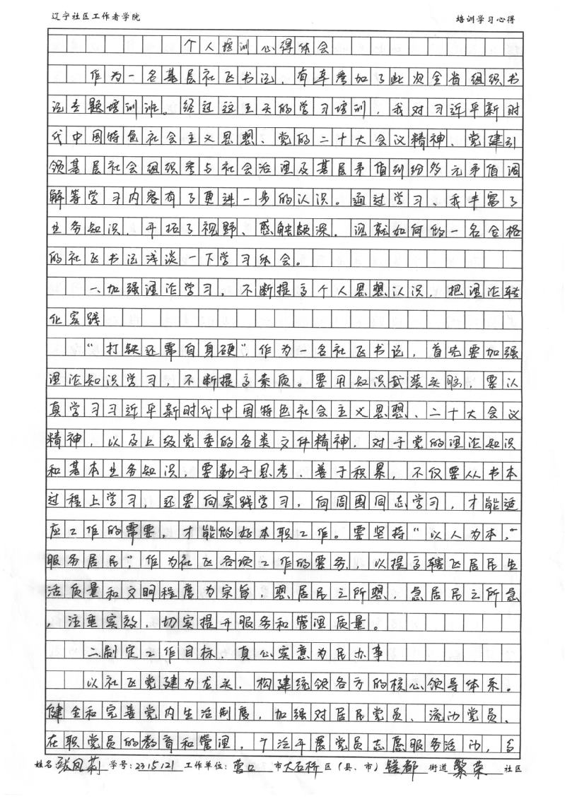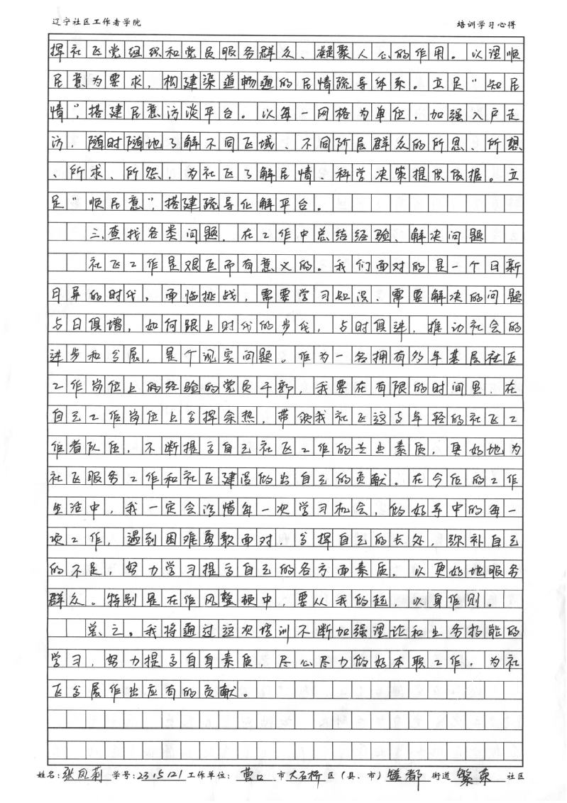营口市大石桥市镁都街道繁荣社区党委书记、居委会主任张凤莉学习心得