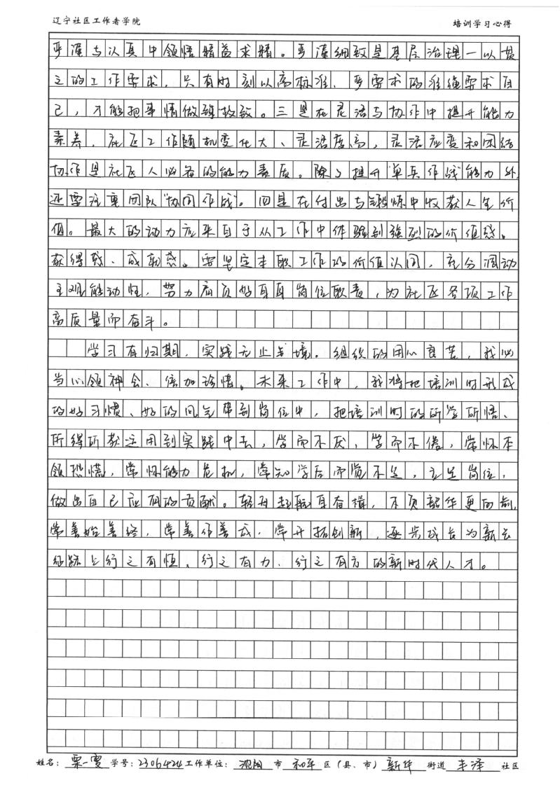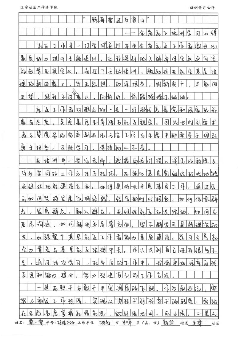 沈阳市和平区新华街道丰泽社区党委副书记栗一雯学习心得