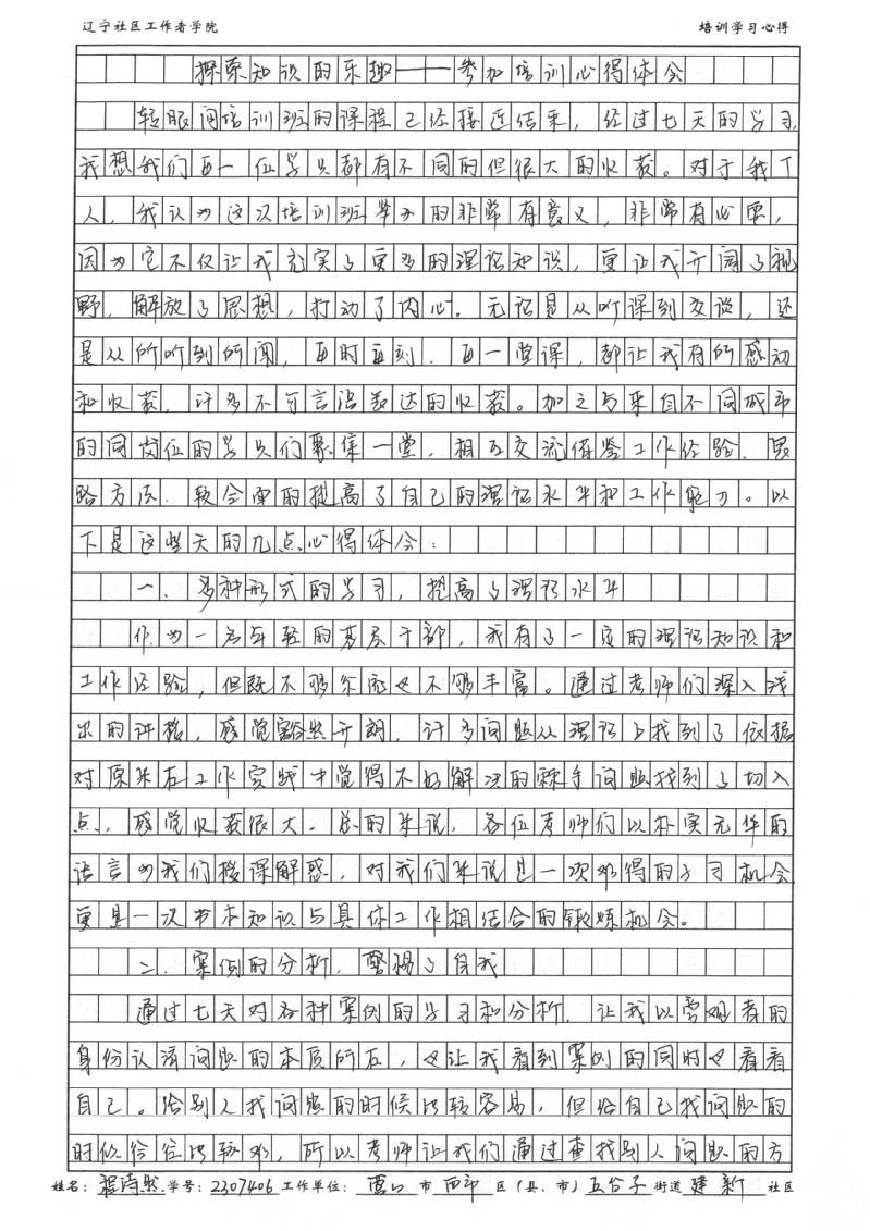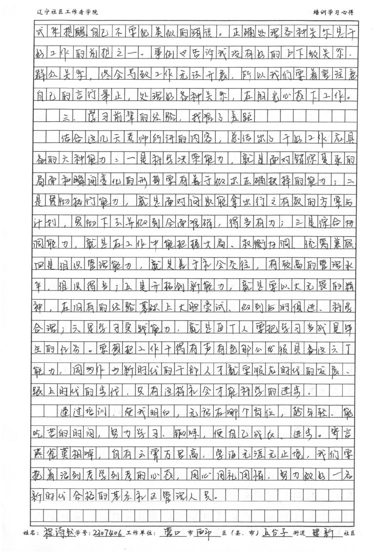 营口市西市区五台子街道建新社区党委副书记程诗然心得体会