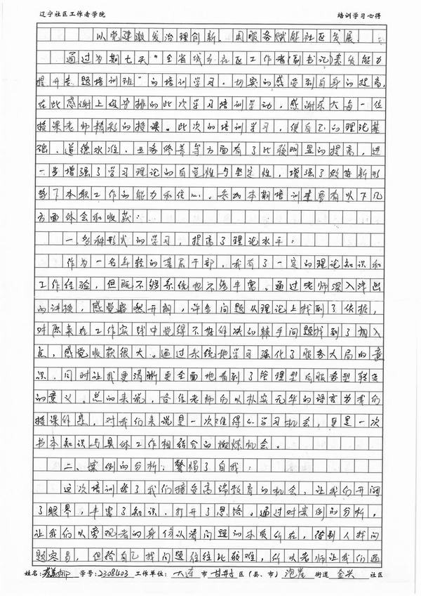 大连市甘井子区泡崖街道金兴社区党委副书记蔡美娜学习心得
