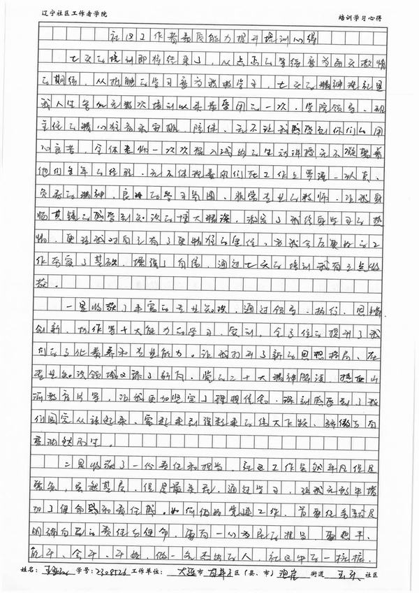 大连市甘井子区泡崖街道玉乐社区党委副书记王亚丽学习心得