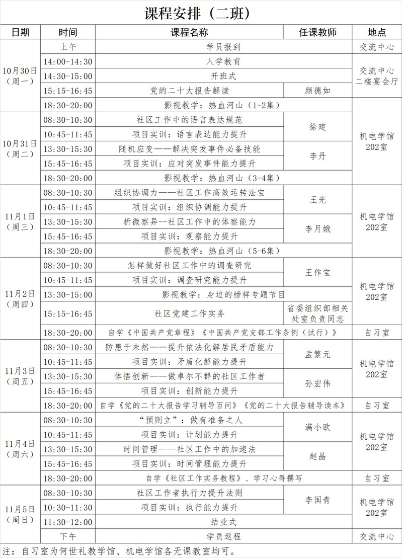 2023年全省城乡社区工作者(副书记)素质能力提升专题培训班第九期(总第101期)课程安排