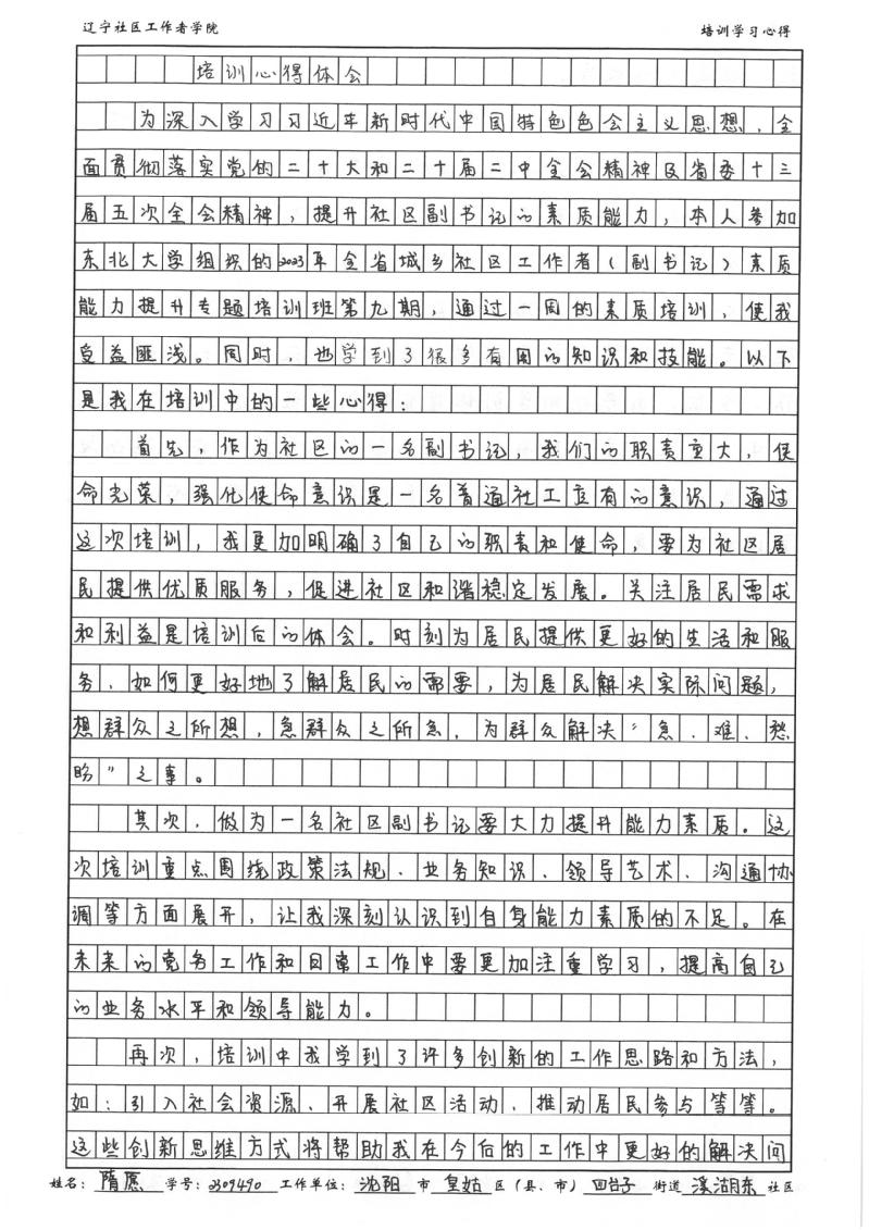 沈阳市皇姑区四台子街道溪湖东社区党委副书记隋愿学习心得