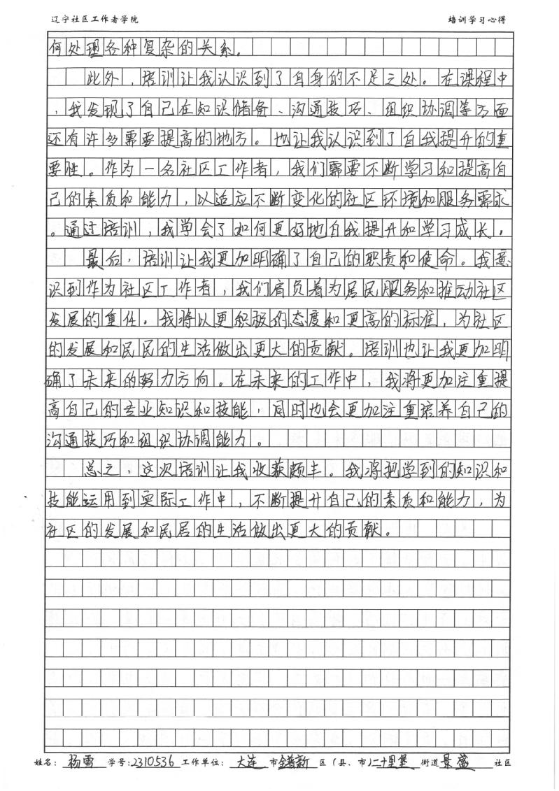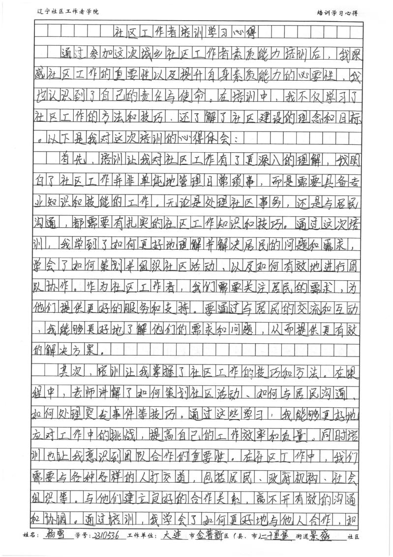 大连市金普新区二十里堡街道景盛社区党支部副书记杨雪学习心得